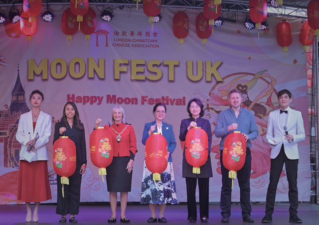 【欧洲时报记者王子璇、实习记者颜陶然图文报道】9月24日,伦敦唐人街人声鼎沸张灯结彩,迎来了伦敦华埠商会举办的2023中秋庆典。