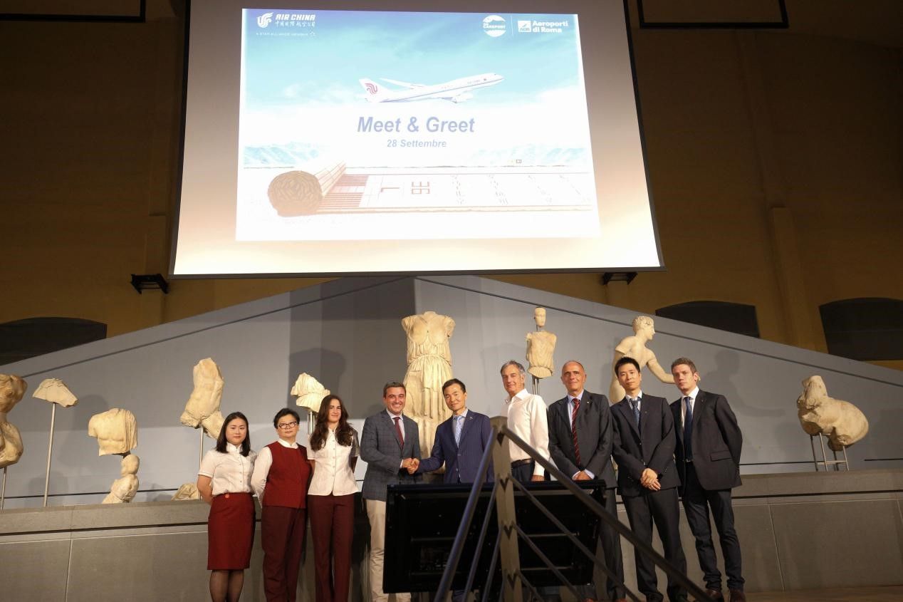 罗马机场集团航空业务负责人Mr Federico Scriboni应邀发言,他说,“随着意大利-北京航线、意大利-杭州航线的班次不断恢复,国航的客运量现已全面恢复到了2019年同期水平。我们很高兴能和大家一起见证中国与意大利间空中连通性的恢复。通过持续地投资与现代化方案的实施,罗马菲乌米奇诺国际机场成为一座联通意大利与其他国家的重要中转站,并支持建立更加紧密的洲际联络能力。”