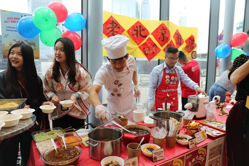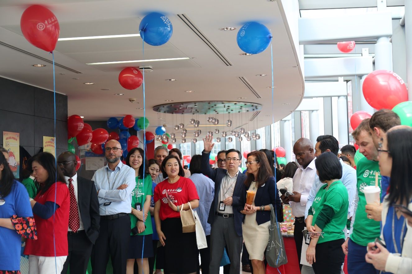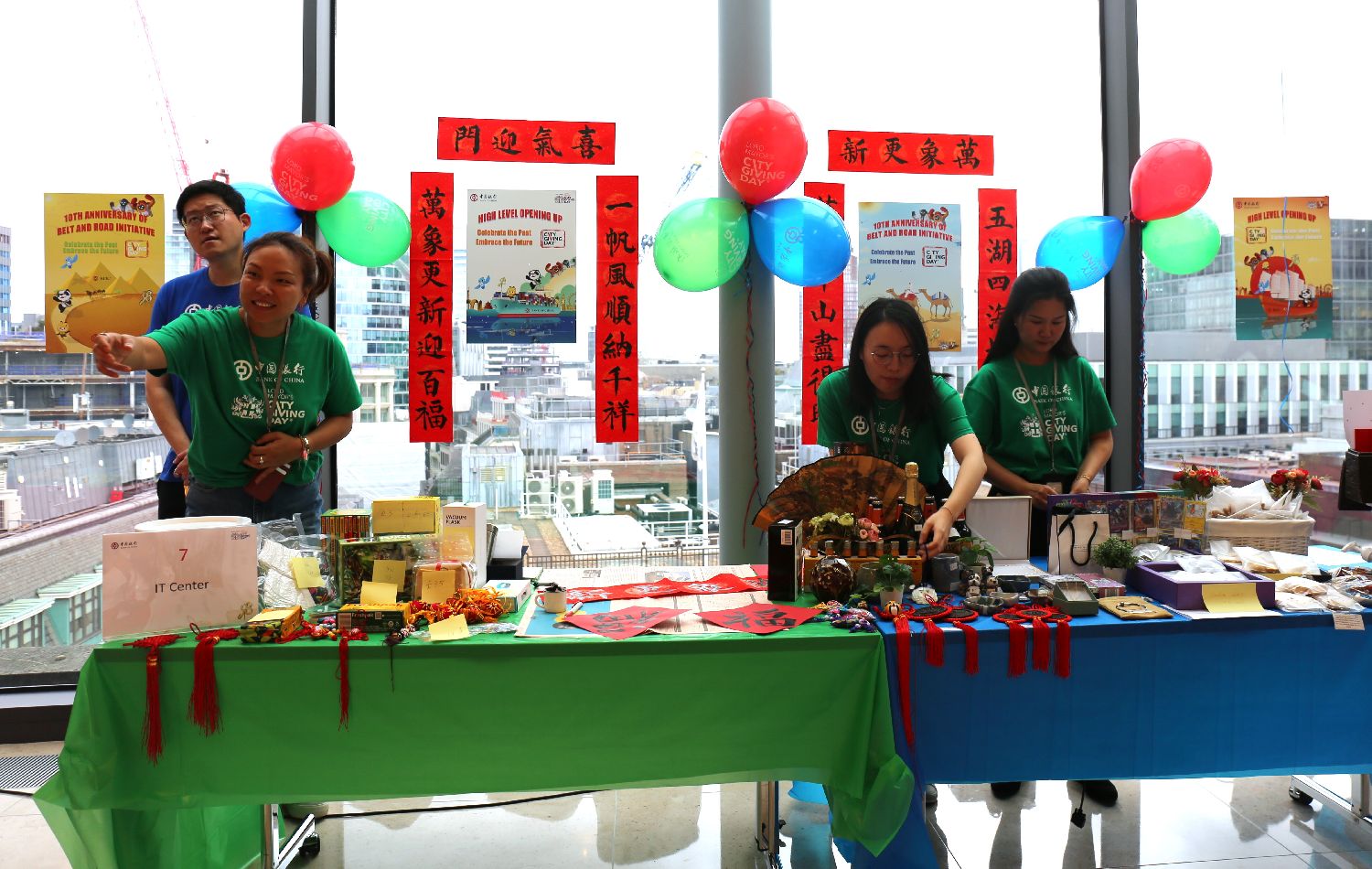 当天的活动现场人头攒动,笑声充盈,以“红、绿、蓝”三个主色调的现场布置,呼应了中国红、绿色可持续发展以及英国国旗中的蓝色,寓意中行在支持中国高水平对外开放、推动绿色可持续发展,以及促进中英互惠合作方面的贡献。活动现场进行的慈善义卖,既有来自中国的书画作品、传统服饰和特色美食,也有来自英国及“一带一路”倡议共建国家的手工艺品等,体现了中国文化与世界的相融互通。