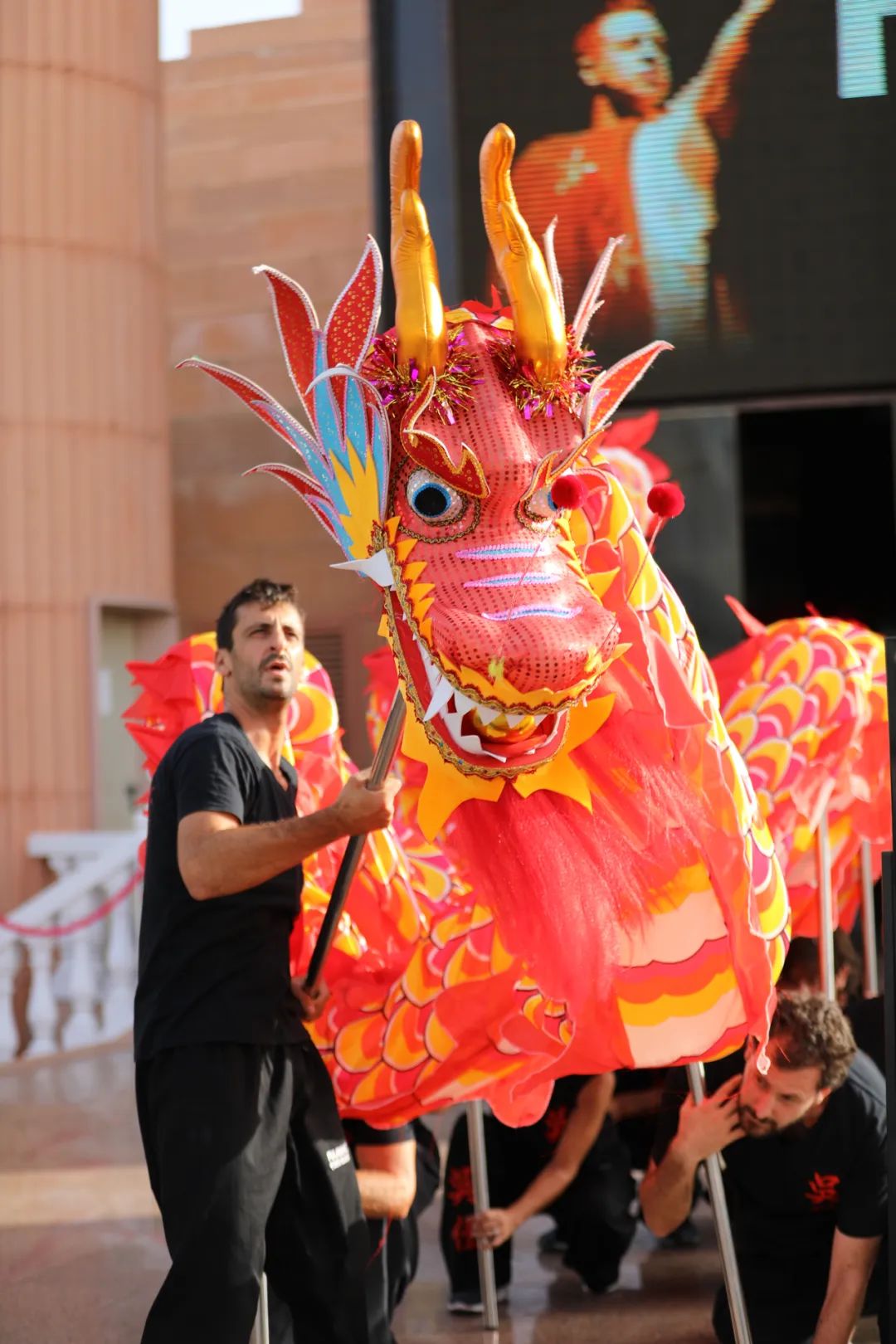 当天下午,欢乐喜庆的舞龙舞狮表演热情迎接每一位嘉宾的到来。