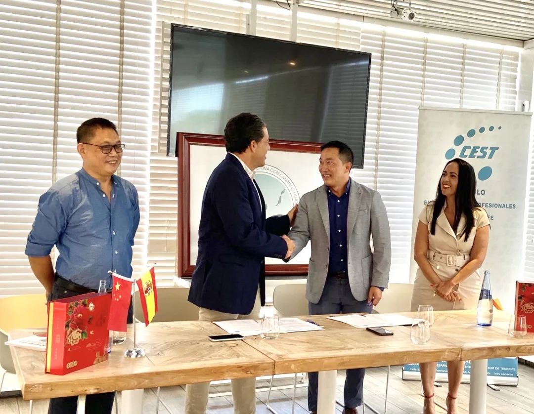CEST商会主席卡布雷拉在致辞中表示,中西建交半个世纪以来,两国企业相互了解,建立联系,合作机会增多,共同发展。多年来,西班牙加那利华商会一直致力于促进当地社会发展,积极举办各种文化和社会活动,与当地社会团结一心,在新冠等艰难时期支援当地,与当地民众共渡难关。近日,CEST商会与西班牙加那利华商会签署了合作协议。CEST商会拥有500多个协会成员,在特内里费岛南部商企近1000家,从今起将是西班牙加那利华商会的忠实盟友,共促商贸和社会领域之间的合作。