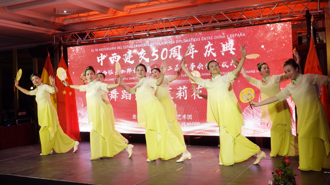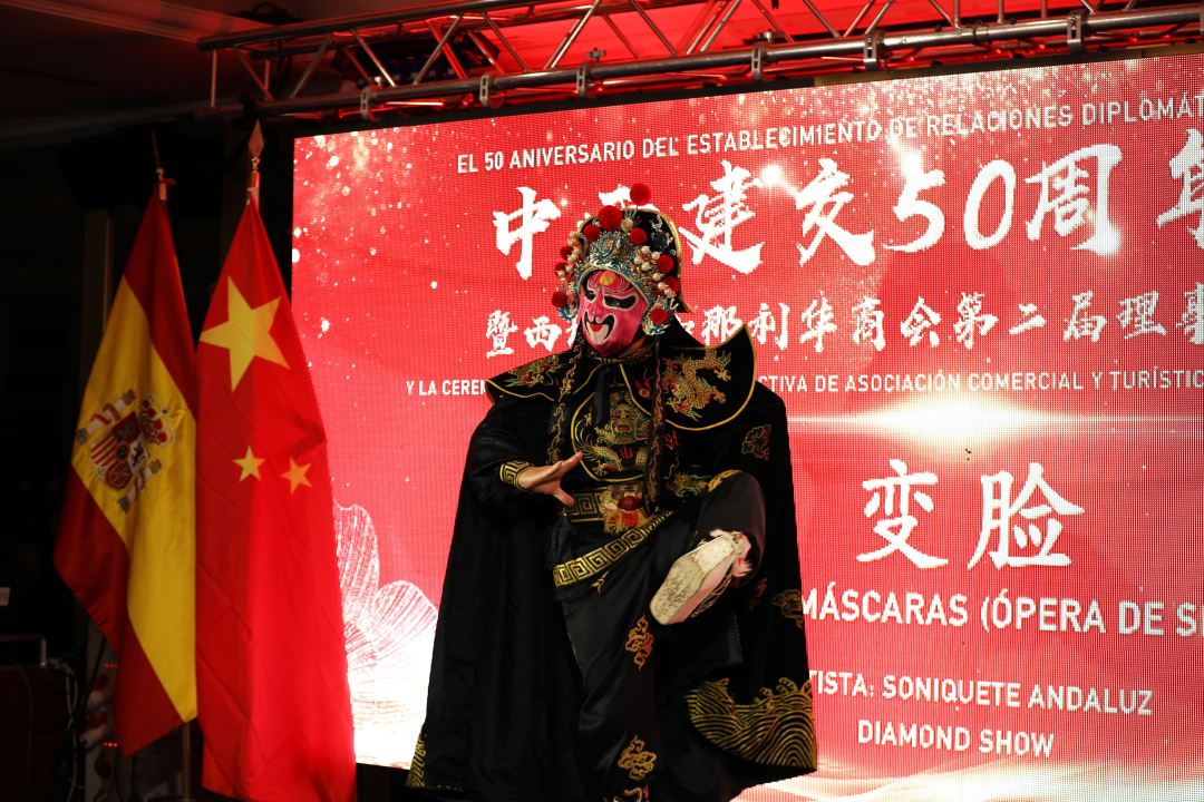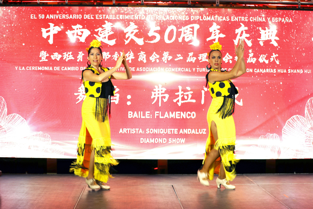 当晚,精彩纷呈的文艺演出惊艳四座。翟超带来的川剧绝活表演《变脸》拉开了文艺演出的序幕。来自The Fabric Creando Artistas的艺术家Judith Pérez Fumero和Ana Obando带来结合小提琴演奏和演唱的艺术表演《我爱你中国》,以音乐架桥,展示出东方歌曲和西方乐器交相辉映的和合之美。马德里华星艺术团献上中国民族舞《茉莉花》,展现中国舞蹈的独特魅力。加那利华侨华人歌手春天演绎的歌曲《今夜想喝醉》《一生心不变》,以及Soniquete Andaluz和Diamond Show带来的弗拉门戈舞表演,点燃了现场欢乐的气氛。