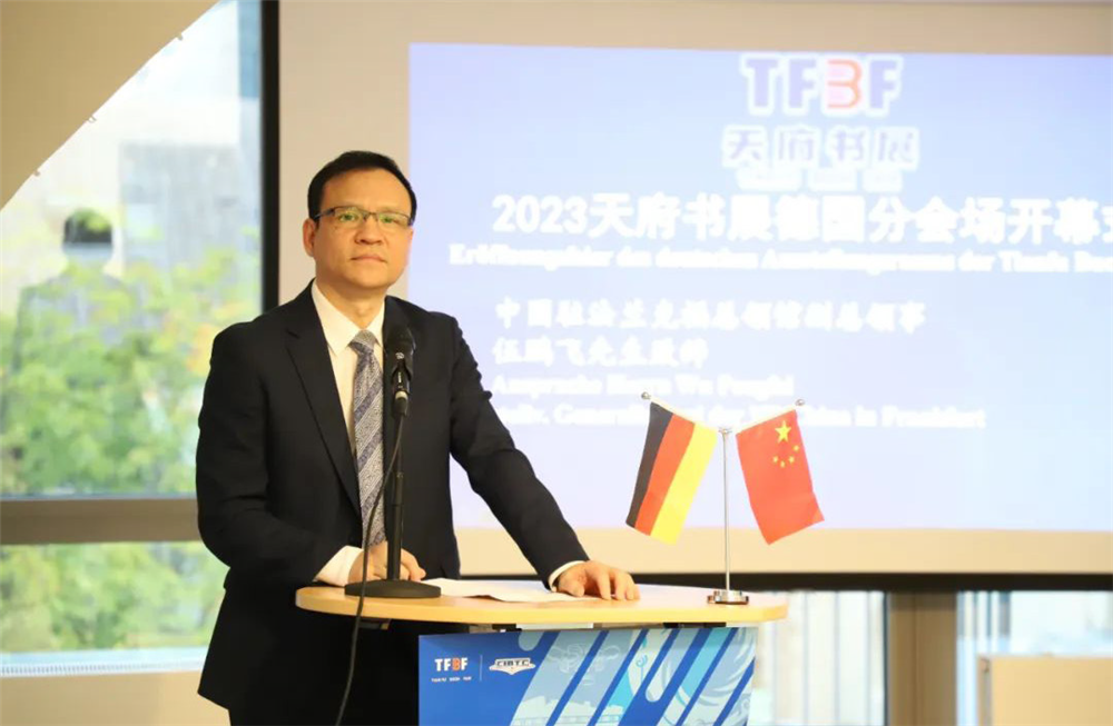 中国驻法兰克福总领事馆副总领事伍鹏飞致辞。(图片来源:本文图片均由主办方供图)