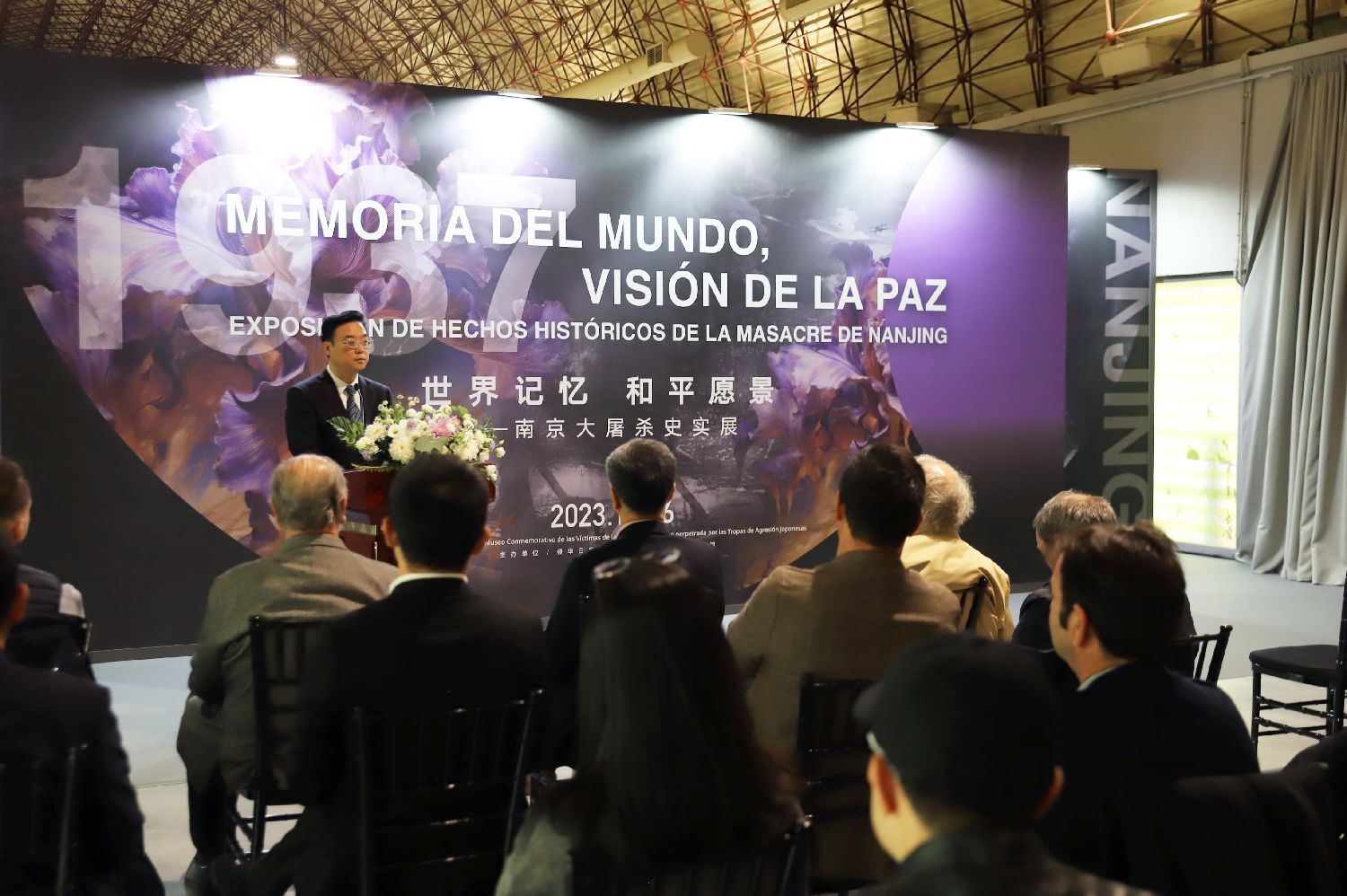 知华讲堂荣誉主席和创始人马塞洛·穆尼奥斯,同时也是改革开放后第一位前往中国创办公司的西班牙人,作为当地代表致辞表示,我们常常陷入以欧洲为中心的思维误区,从欧洲的视角看待问题,并因此将第二次世界大战视为一场欧洲或西方的战争。然而,第二次世界大战,就像其命名所示,实际上是一场全球性的战争,对欧洲产生深远影响的同时,对亚洲也产生了巨大的冲击。第二次世界大战波及全球80多个国家和地区,中国等亚洲国家在抗击日军方面做出了巨大贡献。我们在纪念二战结束的同时,却忽视了这场战争在亚洲同样也带来了深重的苦。我希望能够尽我所能,消除这种历史不公,向数百万亚洲受害者,特别是南京大屠杀的受害者表示敬意。
