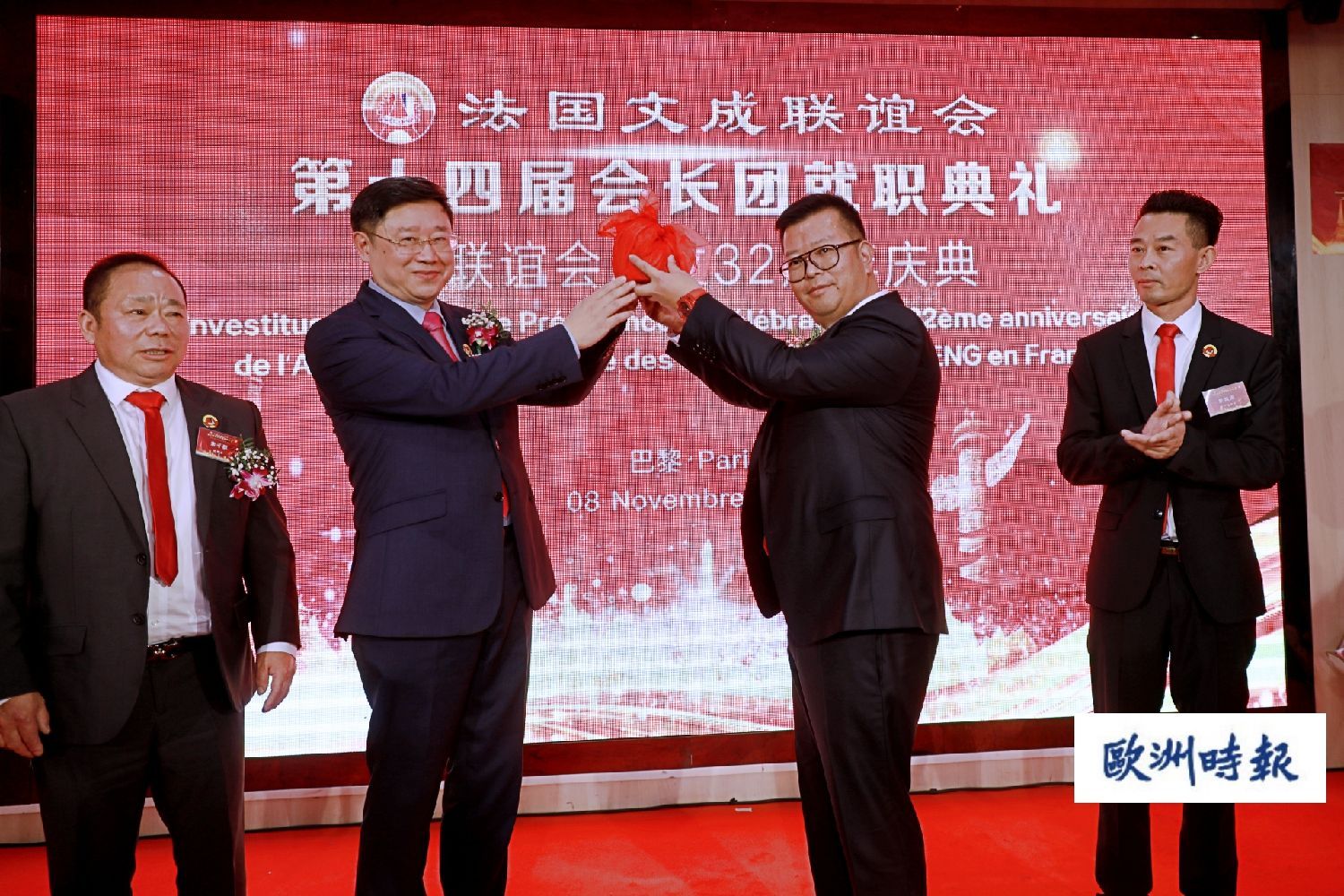 (欧洲时报记者欧文报道)法国当地时间11月8日晚,法国文成联谊会假座巴黎华天中国城酒店,举行第十四届会长团就职典礼,并欢庆联谊会成立32周年。