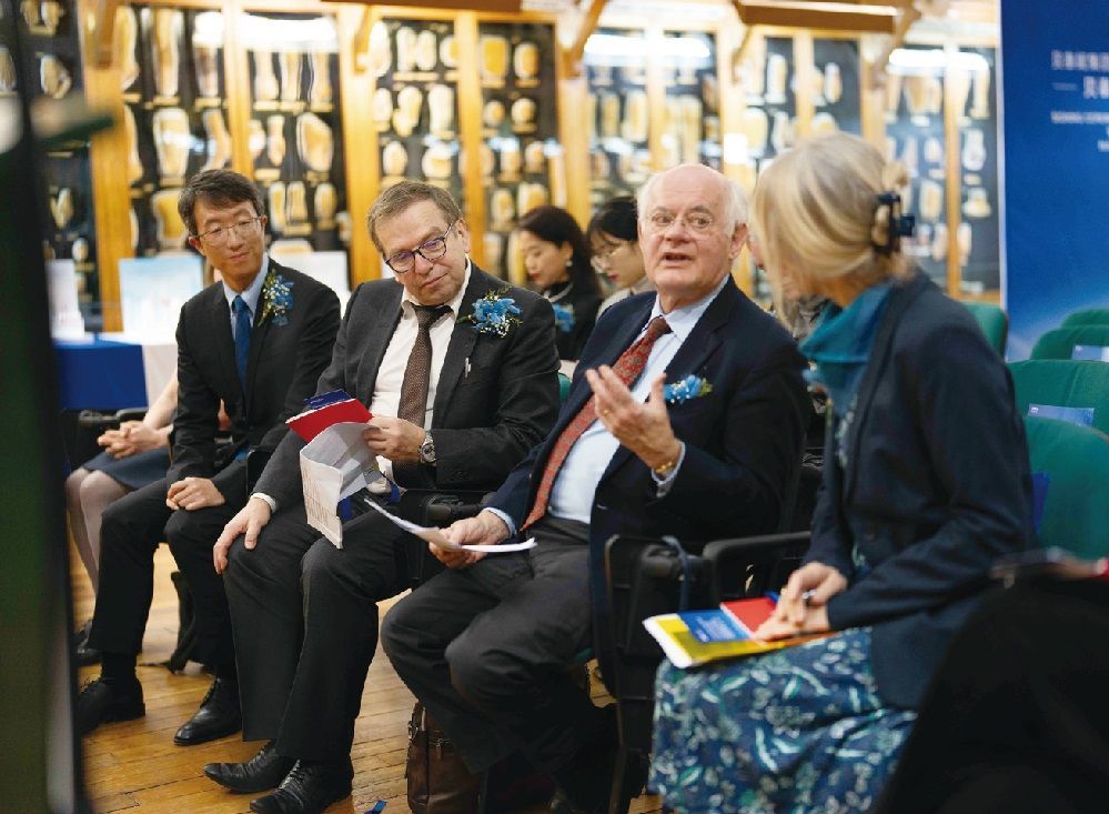 王飞飞总裁(左一)、安柏尔教授(左二)、米歇尔教授(右一)、杜拜尔泰教授(右二)在成立仪式上。主办方供图