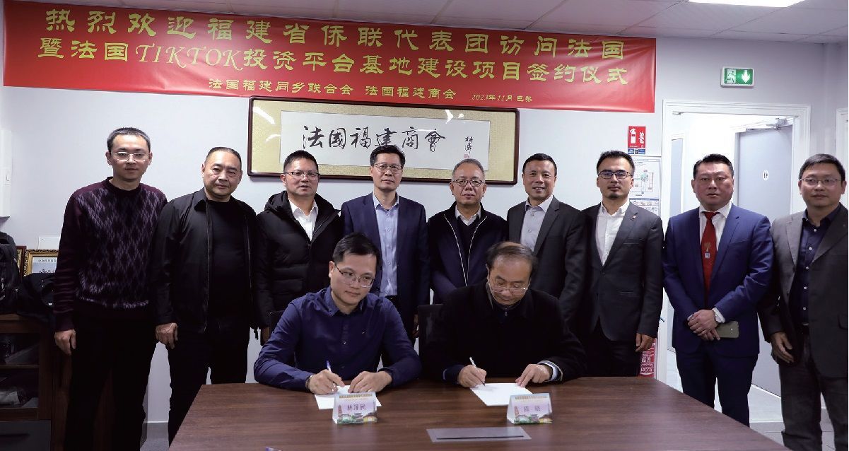 会上,福建省侨联经科部部长陈晓与法国TIKTOK项目总经理林泽民就法国tiktok投资平台基地建设项目签署了合作协议。
