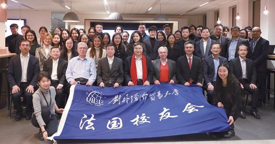 对外经济贸易大学法国校友会首届会长团与母校领导、中法嘉宾在活动现场。