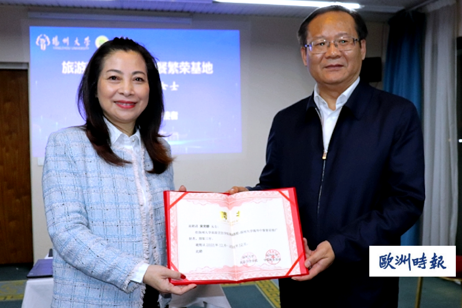 黄美娜获聘扬州大学海外中餐繁荣推广使者及兼职教授