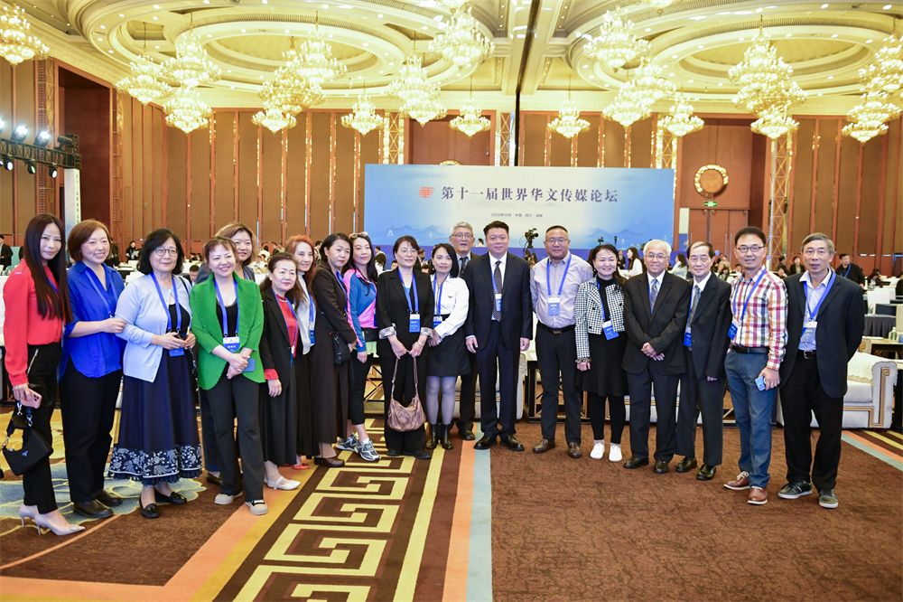 10月23日,由国务院侨务办公室、四川省人民政府和中国新闻社主办的第十一届世界华文传媒论坛在成都开幕。本届论坛以“融通中外,共谱新章”为主题,来自五大洲59个国家和地区的近300家华文媒体代表人士参加论坛。图为部分与会华文媒体代表在会场合影留念。