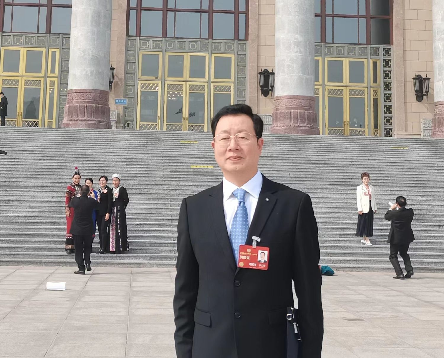 意大利华侨华人友好协商会主席季志海在人民大会堂前留影。(图片来源:季志海供图)