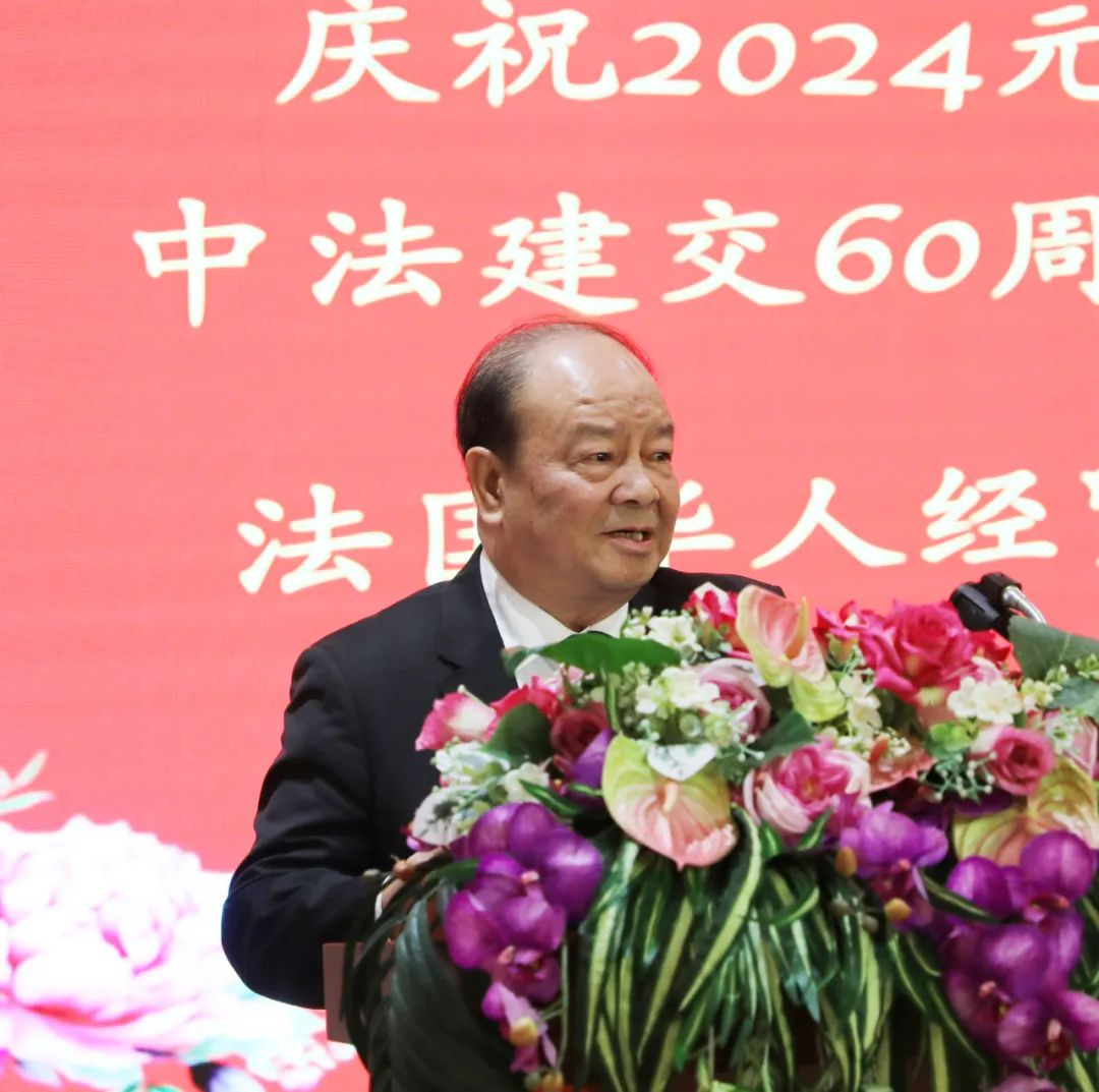 法国华侨华人会常务副主席兼秘书长董德义代表侨界向法国华人经贸协会送上新春祝福。他表示,协会在林东周会长及历届会长的带领下充满活力,会员爱国爱乡,会务蓬勃发展。不仅积极主动融入法国主流社会,还投身侨届组织的各项活动中,为侨团赢得声誉。作为两国友谊和关系不断加深的见证者、贡献者,我们愿意以庆祝中法建交60周年为契机,各兄弟侨团互勉共进,为中法两国的经济发展、文化交流等事业继续做出新贡献。