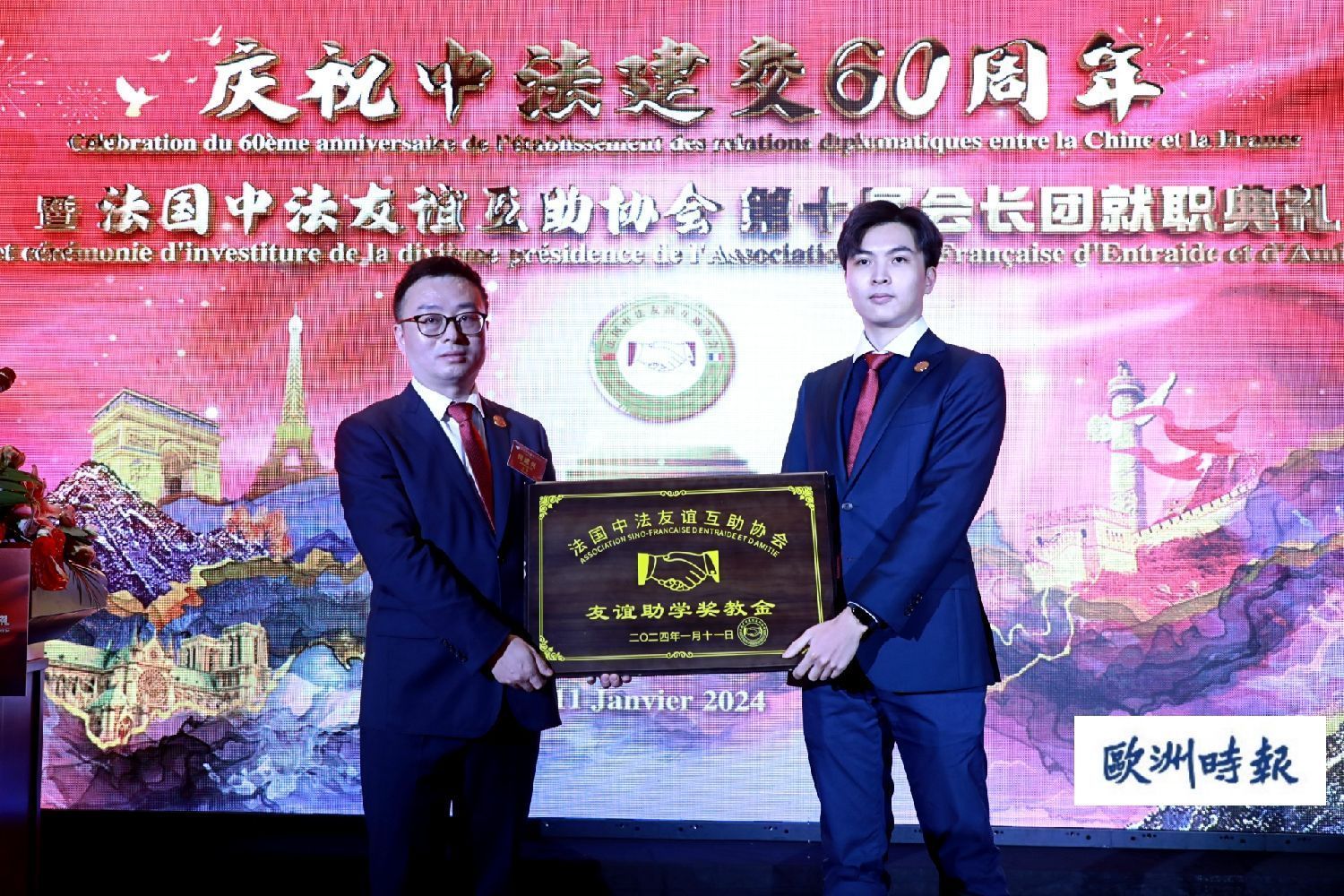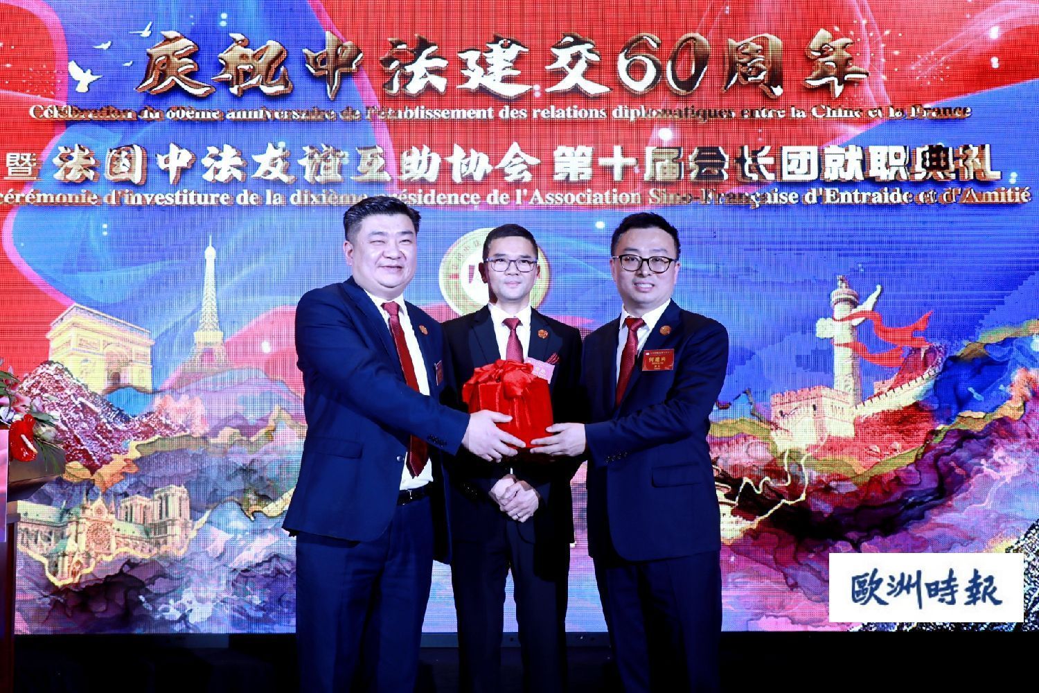 (欧洲时报记者欧文报道)法国当地时间2024年元月11日,法国中法友谊互助协会举行庆祝中法建交60周年暨第十届会长团就职典礼。何建兴就任新一届会长。陈志远就任执行会长,陈成辉就任第一副会长,曾波就任第二副会长,林金杰蝉联秘书长。