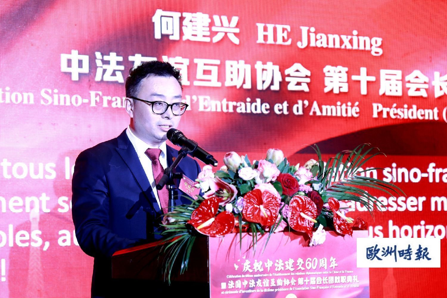 何建兴表示,自己就任法国中法友谊互助协会第十届会长,既感荣幸又深知任重道远。他代表新一届会长团郑重承诺,将尽心尽力与全体同仁携手前进,在新的征程上同心协力,加强会务建设,推进协会的各项工作,进一步提高协会知名和社会认可度,不辜负全体会员的期望,让协会成为一个温暖的家。同时,将继续助力中法两国文化的互融互鉴,讲好两国故事,促进中法各领域的交流,促进和谐侨社的发展,挖掘华侨新生代的资源优势,服务于侨社,服务于中法友好。