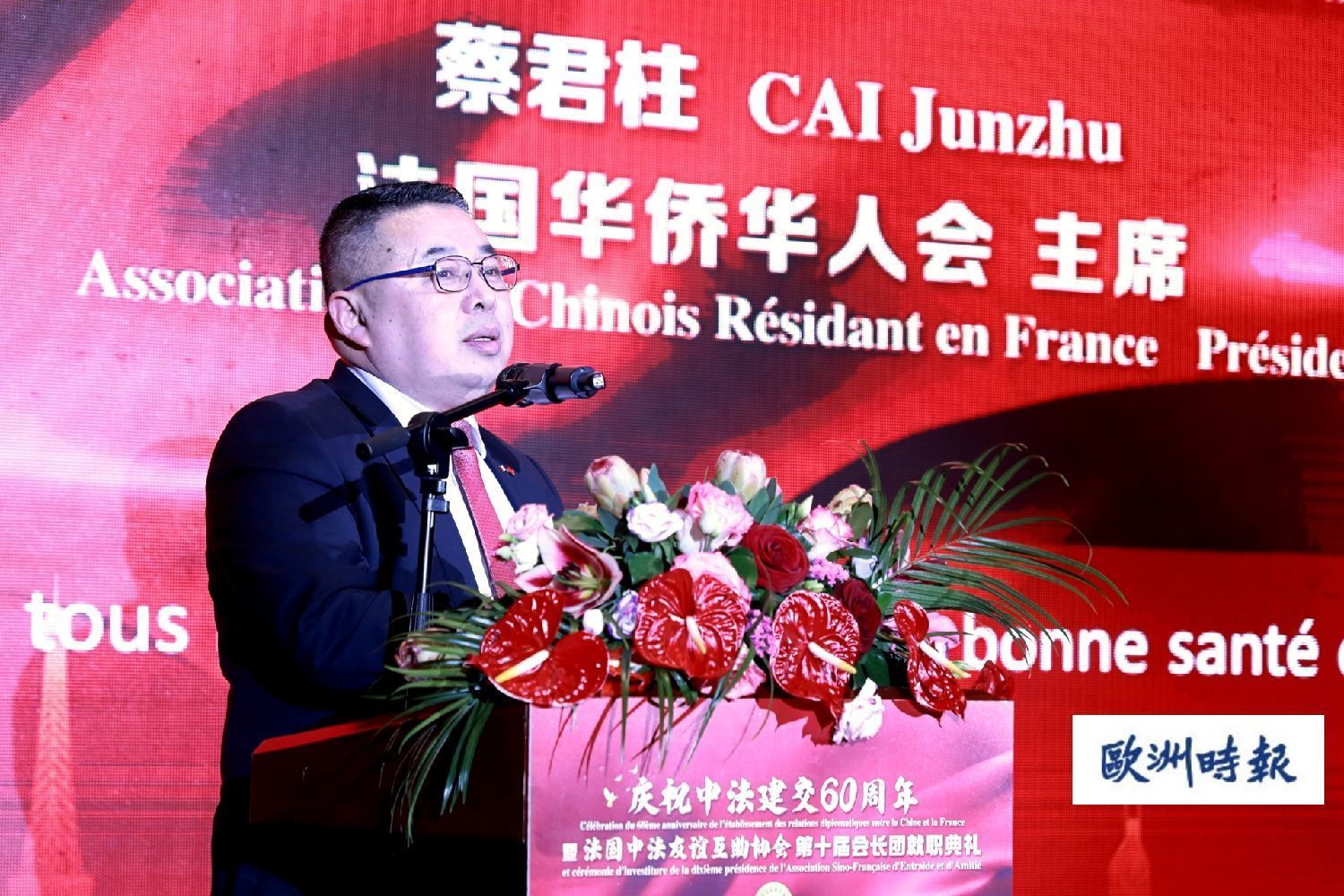 法国华侨华人会主席蔡君柱代表旅法侨界向何建兴和法国中法友谊互助协会新一届会长团成员的就职表示热烈祝贺。蔡君柱希望在何建兴的带领下,法国中法友谊互助协会第十届会长团全体成员,继续不负众望,砥砺前行,积极参与旅法侨界的各项活动,携手兄弟侨团共建和谐侨社,共促发展。