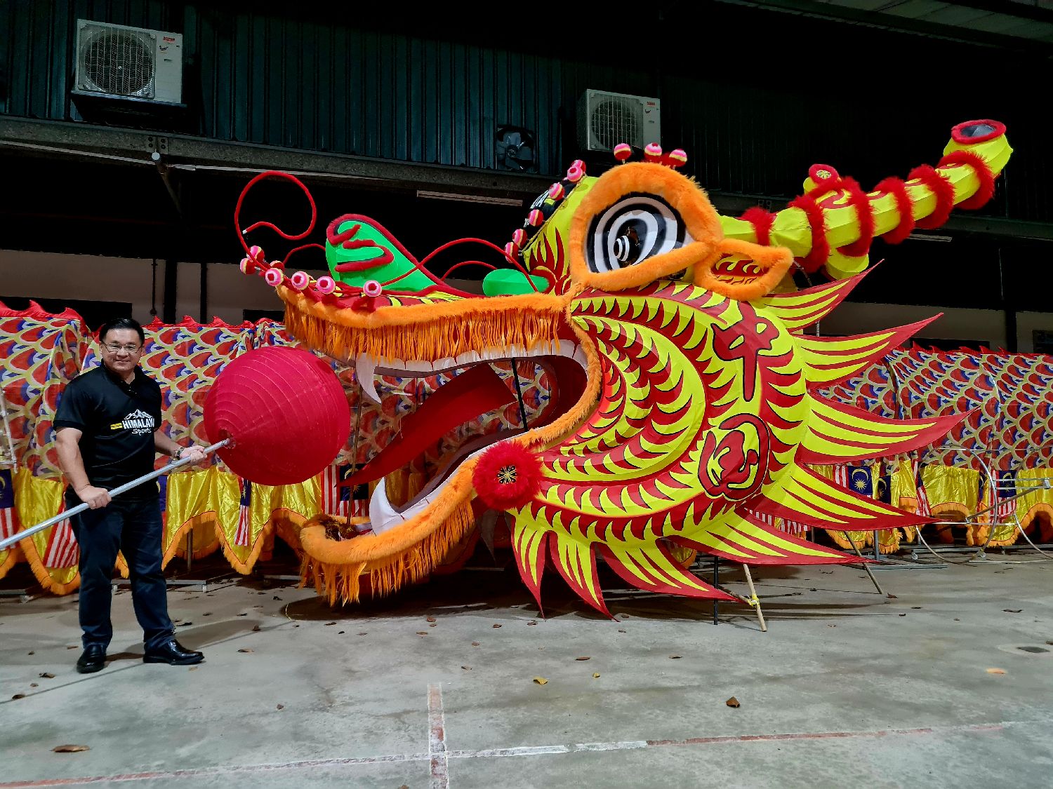 “中马友谊祥龙”长约190米,仅龙头部分就重达60公斤,马来西亚纪录大全将它以“最大舞龙项目”列入纪录。颜天禄称,舞龙以马来西亚辉煌条纹及中国五星红旗为制作主题,具有纪念两国建交50周年的意义。