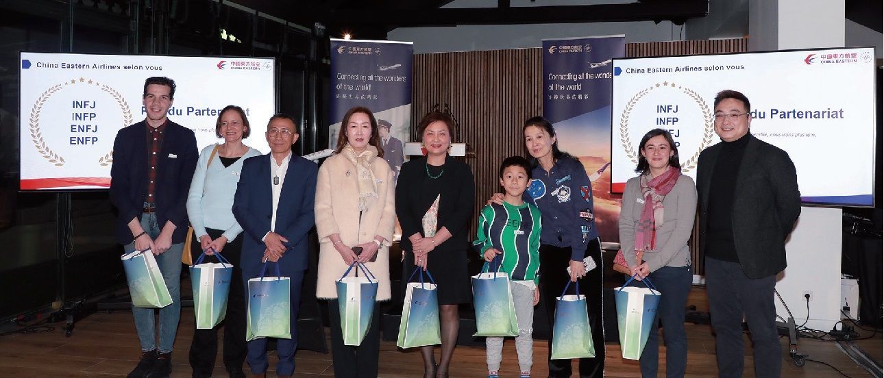 为感谢各家合作伙伴对东航长期稳定发展付出的努力,活动现场设置了颁奖环节。以别开生面的MBTI性格测试互动方式,分别颁发知心朋友、合作伙伴、忠诚伙伴和最具潜力四项奖项,感谢各方与东航数年来的深入合作,为疫情后欧洲市场的蓬勃恢复和海外旅游业务的快速增长做出的贡献,并期待新的一年扩大双方友好合作关系、携手服务全球旅客。同时本次活动还特别穿插了抽奖环节,奖品包括东航飞机模型,东方万里行金卡(天合联盟Elite Plus)、巴黎上海经济舱及公务舱往返机票等。抽奖活动将现场气氛推向高潮。