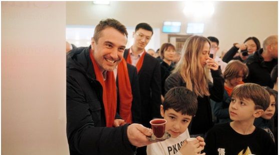 法尔基市长和当地市民在活动现场品尝中国红茶