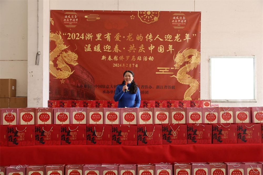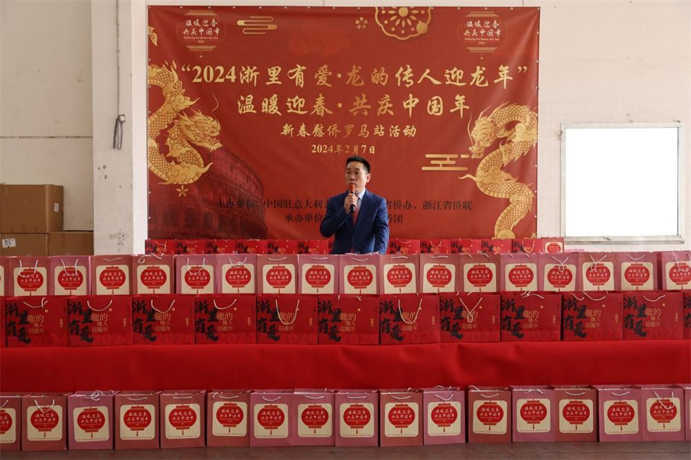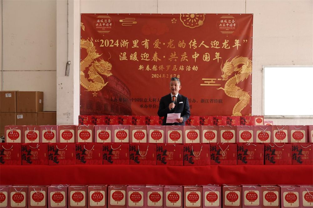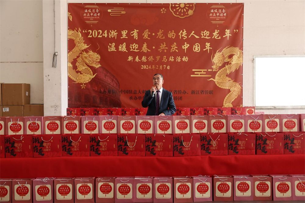 【欧洲时报记者张锐罗马图文报道】7日,在罗马天鹰仓储物流有限公司举办了“浙里有爱,龙的传人迎龙年,温暖迎春,共庆中国年”活动。中国驻意大利大使馆过琳公参,领侨处主任张婵、领事张虓以及当地华社代表,留学生代表等共同出席了本次活动。