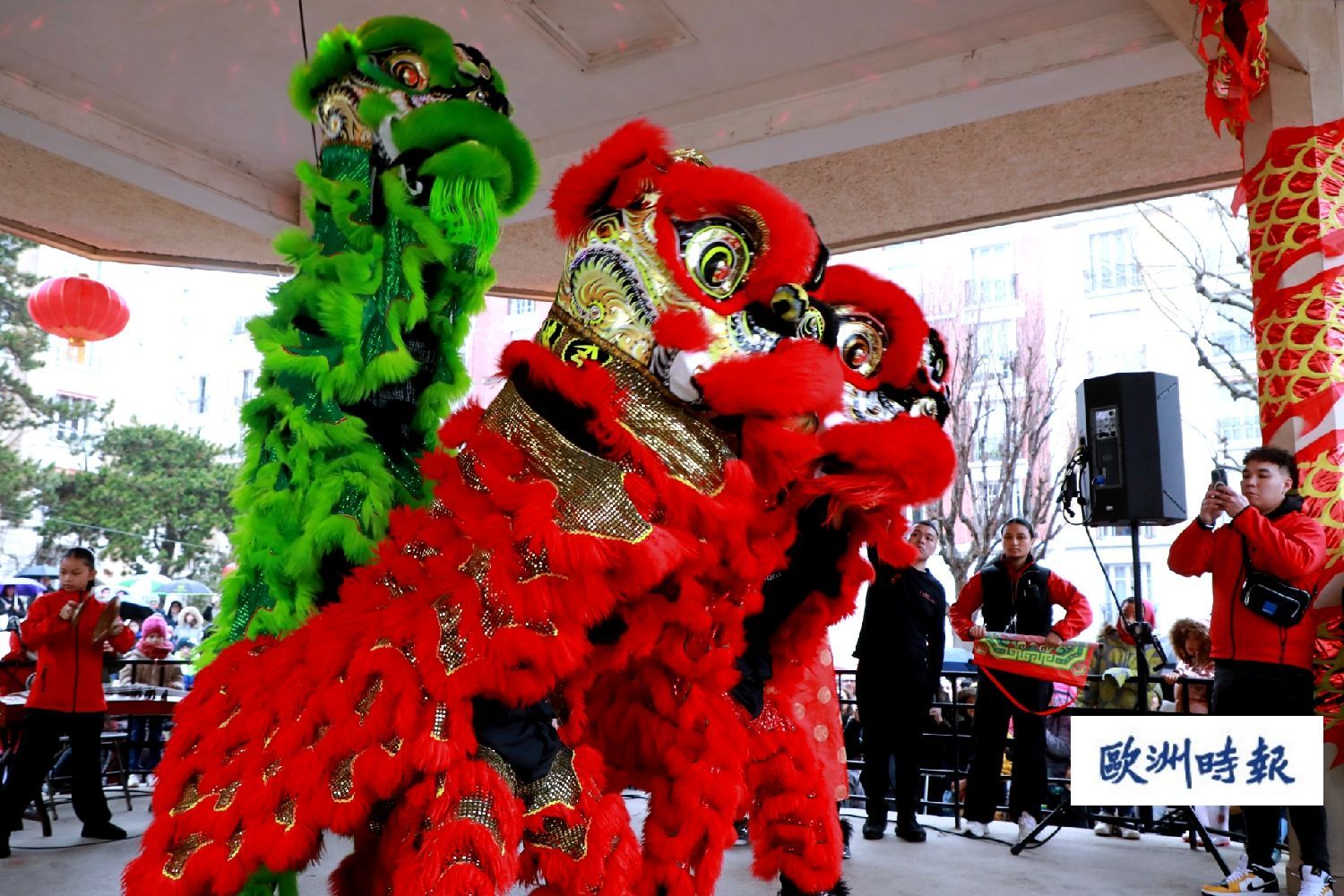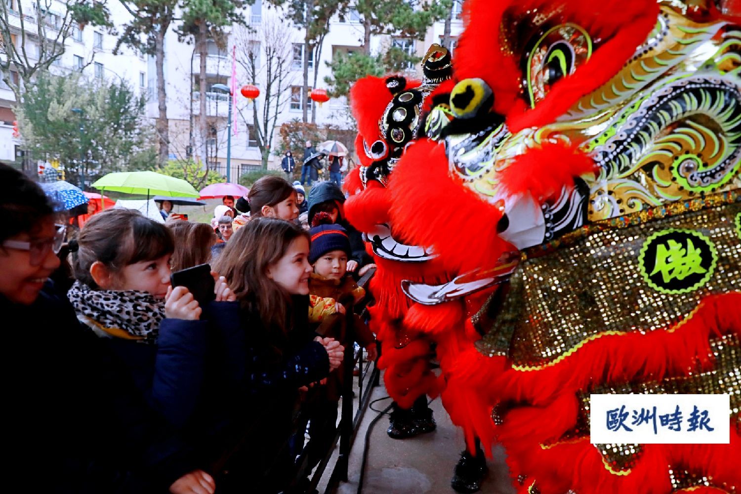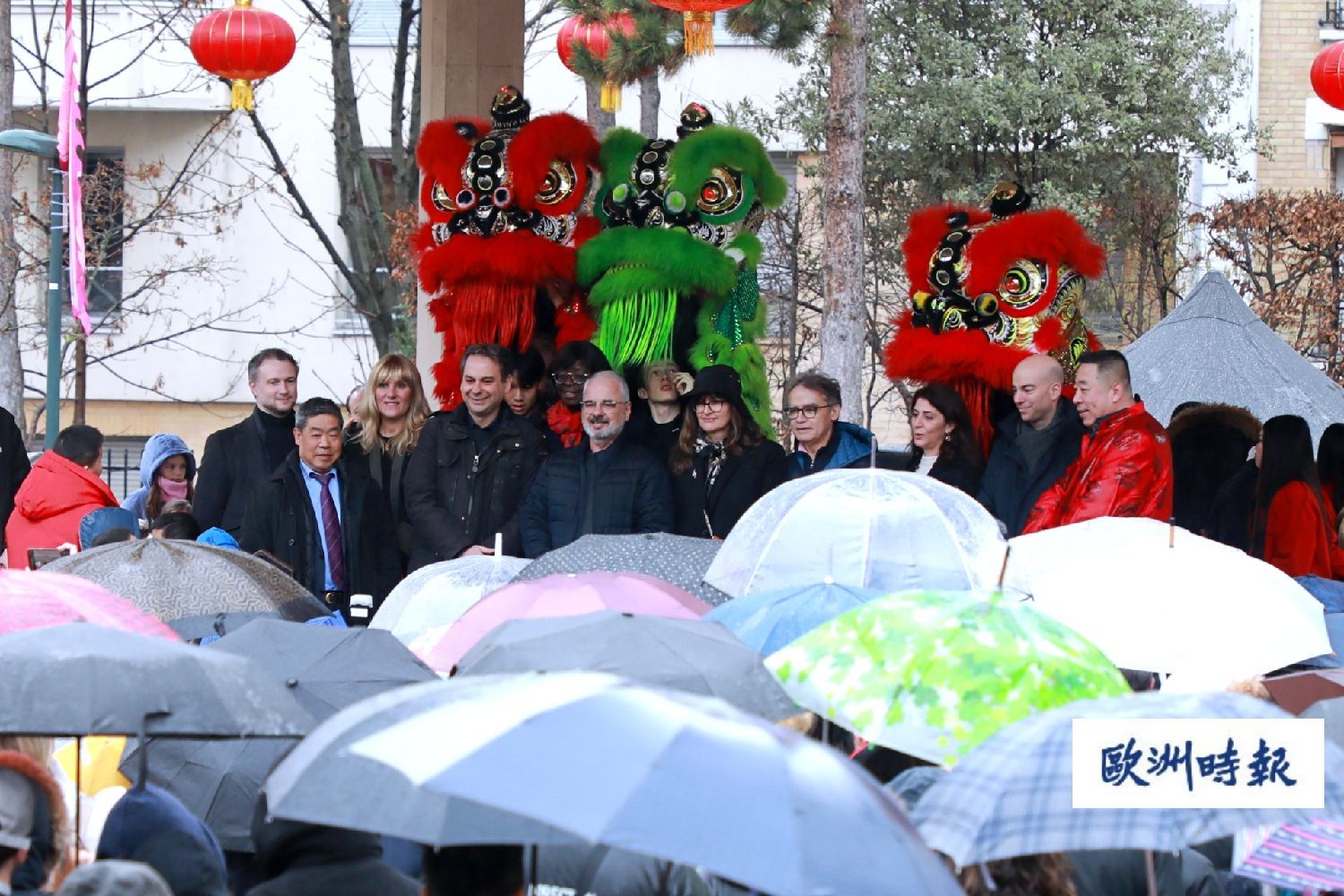 10日当天,恰逢大年初一,法国塞纳河畔阿涅勒市和库尔布瓦两市共同举办庆祝活动,邀请华人舞狮表演队和法华文艺爱好者参加庆祝表演,让当地民众一起分享新春的喜悦。尽管当天的庆祝活动在绵绵春雨中进行,但是仍然抵挡不住当地民众的热情。随着欢快的锣鼓声响起,两市民众打着雨伞伫立在雨中,观看在公园一座亭子里进行的舞狮表演。许多家长驮着孩子,顾不了撑伞。还有一些孩子则爬到公园里的儿童滑梯上,远眺表演。一位法国老太太笑着对记者说,真的很热闹,自己很高兴,尽管什么也没看到,但是能听到了欢快的锣鼓声就很满足了。
