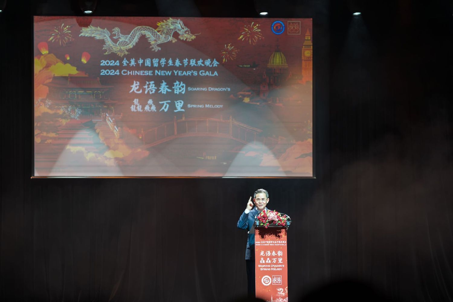 【欧洲时报记者王子璇、朱若溪、实习记者钟睿图文报道】2月7日,由全英中国学生学者联谊会主办的“2024年全英中国留学生春节联欢晚会”在伦敦举行,来自英国30余所高校的校方代表、部分中资机构、华人华侨友好单位及各界友好人士近1000人共同出席了本次盛会,共迎龙年新春的到来。