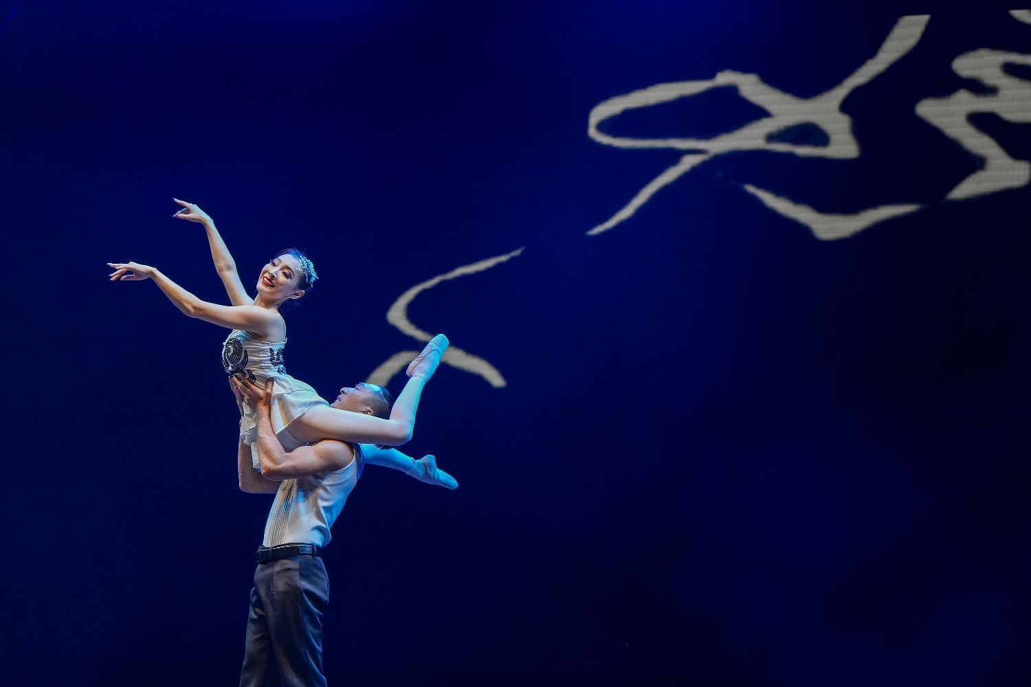 图为演员袁飞(右)和韩莹在英国伦敦举行的“四海同春”慰侨访演活动上表演杂技。(图片来源:新华社)