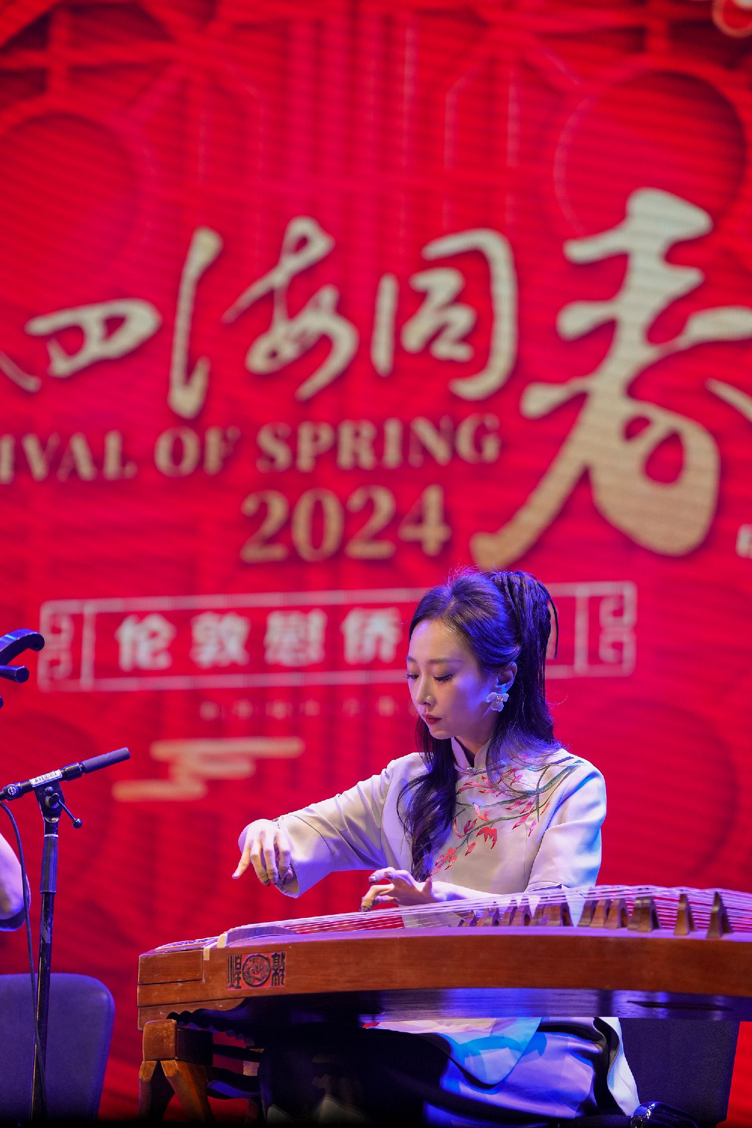 图为演员王一凡在英国伦敦举行的“四海同春”慰侨访演活动上演奏古筝。(图片来源:新华社)