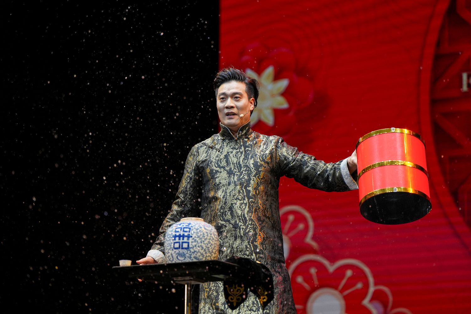 图为演员胡玲珑在英国伦敦举行的“四海同春”慰侨访演活动上表演传统戏法。(图片来源:新华社)