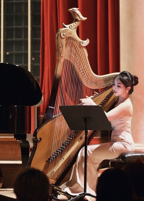 徐富霜说,由于价格昂贵、师资稀少,学习箜篌的人也是少之又少,“在英国遇到了很多对箜篌感兴趣的外国人,我会演奏给他们听,也向他们介绍这项乐器的神奇之处,希望有更多人能看到箜篌,了解箜篌,学习箜篌。”采访最后,徐富霜向记者展示了“凤头箜篌”的独特之处,“这架箜篌的最上端雕刻着凤凰的脑袋,寓意吉祥幸运,这是中国古典乐器送给当今的我们最浪漫的祝福。”