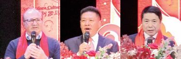从左至右分别为罗马市第五区政府主席毛罗·卡利斯特发言;罗马知名侨领代表陈正溪发言;意大利华商总会会长洪森淼发言。