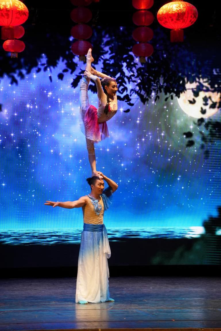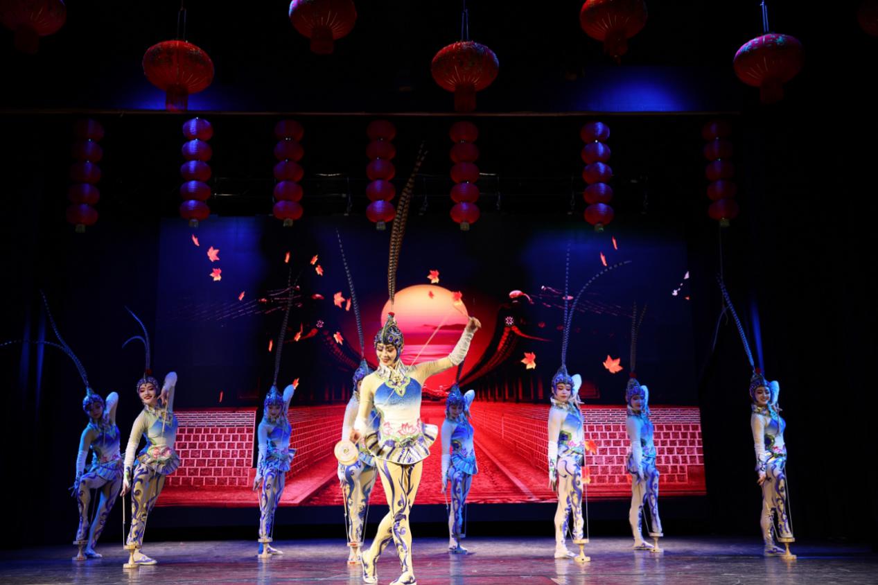 致辞环节结束后,表演正式拉开帷幕。这场精彩纷呈的演出活动汇集了独唱、杂技、独奏、民乐合奏、古彩戏法等多种生动的艺术表演形式,如女声独唱《我爱你中国》《长江之歌》,杂技《宫商角徵羽-球技》,民乐合奏《赛马》等,每个节目都充满了深厚的中国传统文化气息,让观众近距离地感受中华艺术的醇厚底蕴。