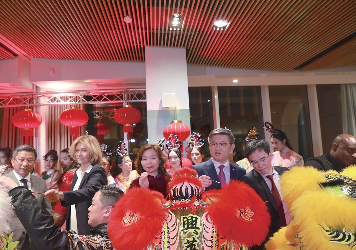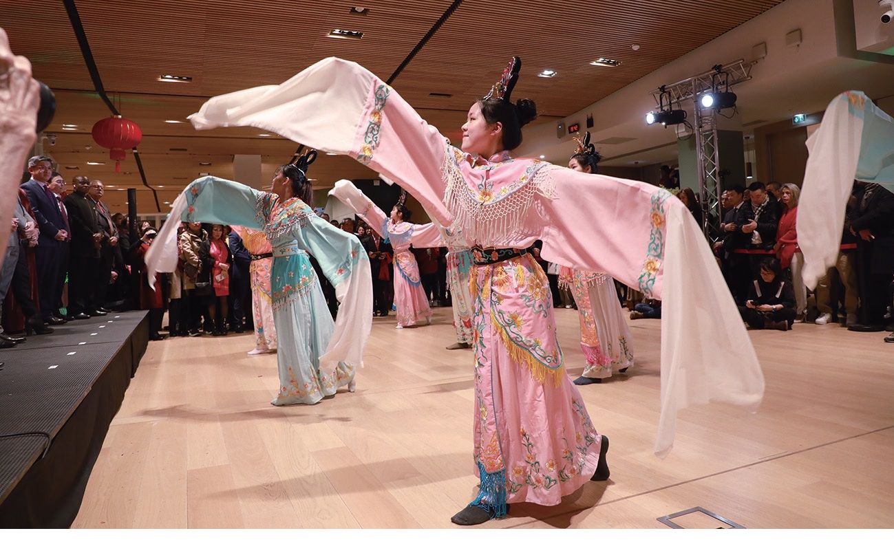 当晚,大区议会宴会大厅龙腾狮跃、张灯结彩,佩克雷斯、陈栋、郑江秀文、郑桂珊、孙文雄等嘉宾为舞狮点睛,拉开了春节招待会的序幕。身着中国传统服装的中文学校学生们载歌载舞,法华大学生表演了精彩的节目,中法选手现场表演了中国武术,东南亚华侨献上了特色演唱,为招待会增添了喜庆欢快的气氛。