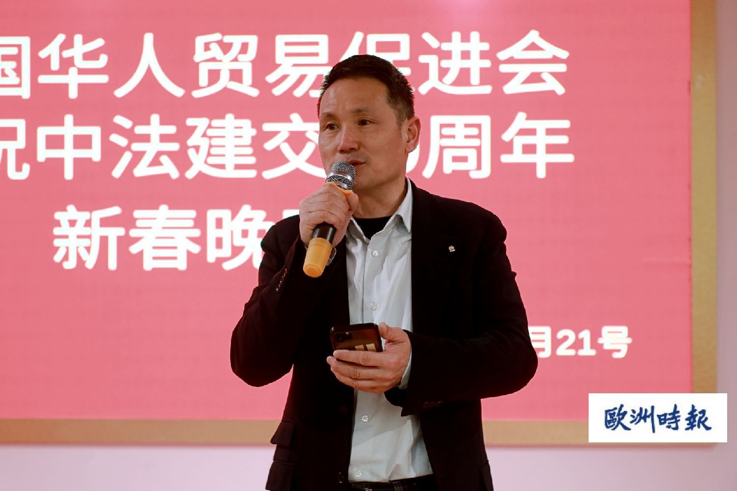 法国华人贸易促进会第七届候任会长林相伟也向大家致以新春的问候。林相伟感谢大家的支持,表示将和全体成员一起,多做一些有益中法民间交往的事情。林相伟祝大家新年快乐,龙年大吉。