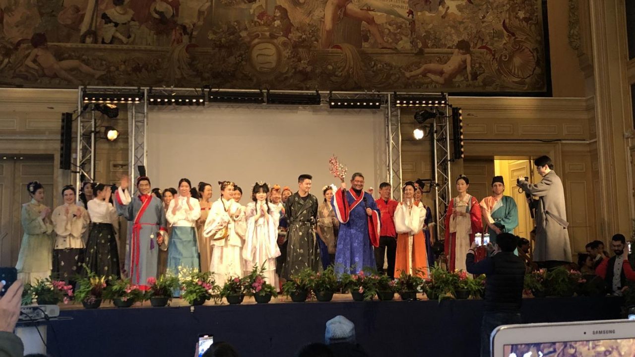 千门万户曈曈日,总把新桃换旧符。法国博衍汉章传统研习会会长仲月茹(仲巾函)代表主办方在致辞中向大家表示热烈的欢迎和衷心的感谢。回首2017年,这是博衍协会第五届举办全穿汉服的新春盛典。为庆祝中法建交60周年,今天我们再次相聚在一起,这是中法两国友谊历史上的重要时刻,也是共同的喜悦和骄傲。作为法国汉服汉文化的创始人,中国汉服概念与文化的海外创始复兴者,法国博衍汉章传统研习会将继续发挥自身领域的独特作用,为促进中法文化交流及两国民间友谊再立新功。