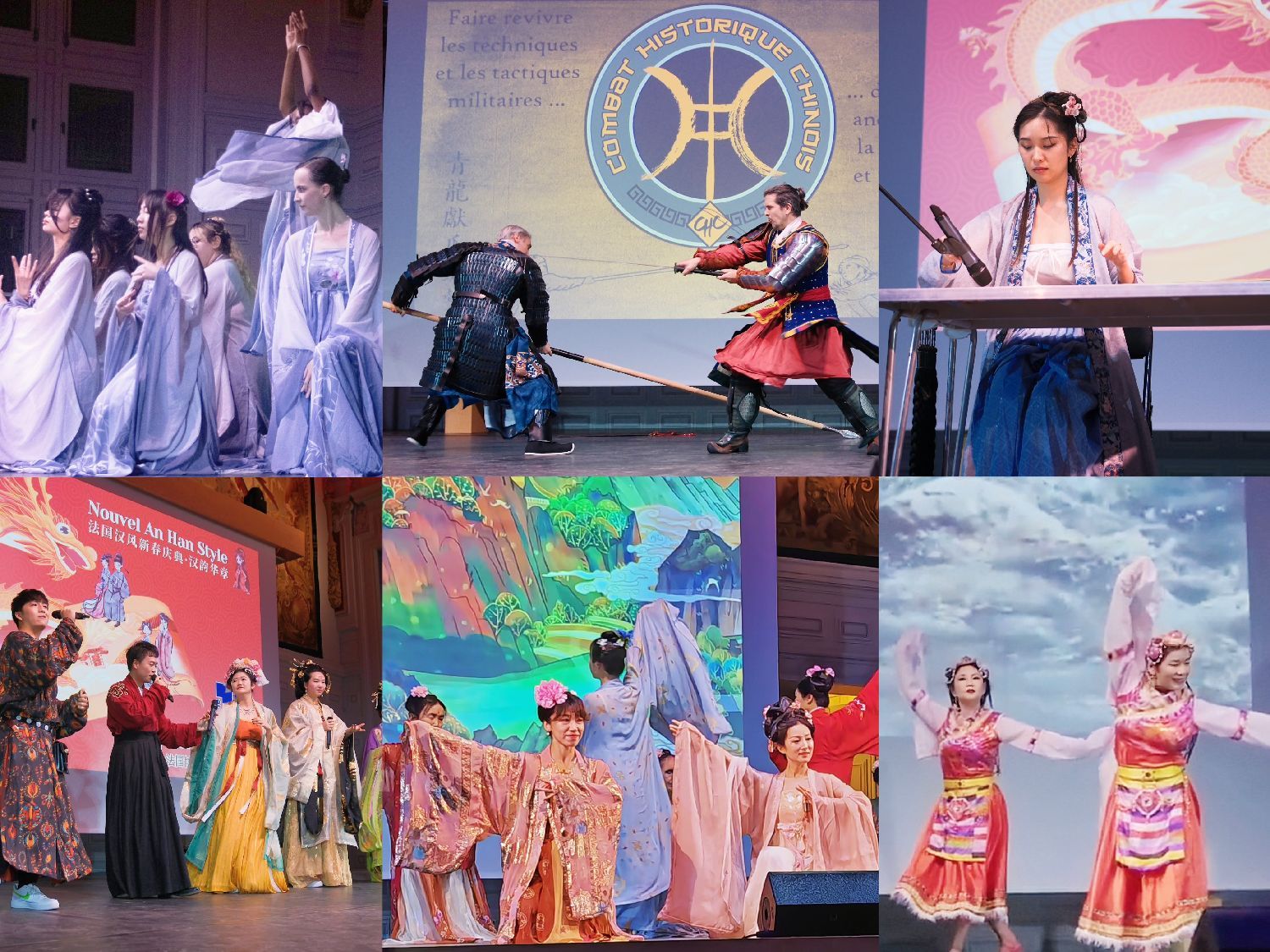 志愿者们倾情出演的中国汉服秀,以及手工自制的中式盔甲对战,将庆典气氛推向高潮!新时代审美风格的歌唱、乐器、舞蹈频出,法中艺术家共同演绎汉风盛典,与此同时,巴黎奥运会火炬手Jessy Lee也上台加盟功夫演出。