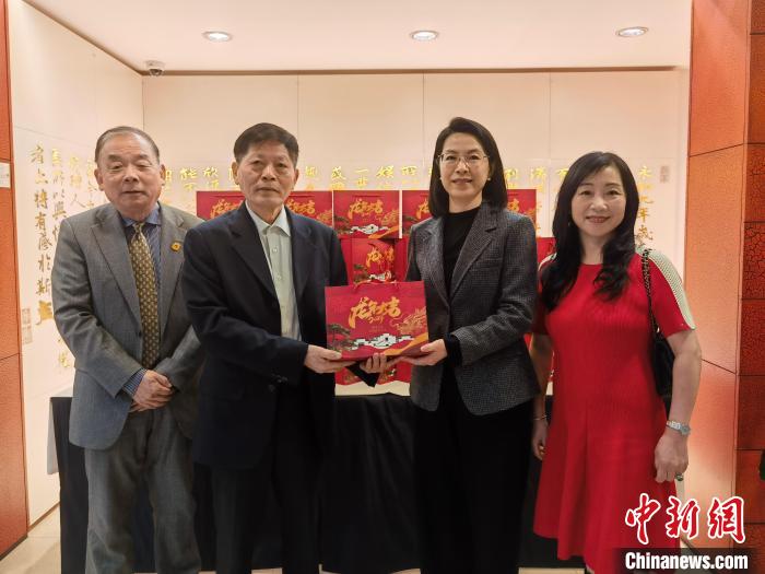 驻挪威大使侯悦(右二)把春节“暖心包”送到侨团负责人手中。(图片来源:中国驻挪威大使馆供图中新网)