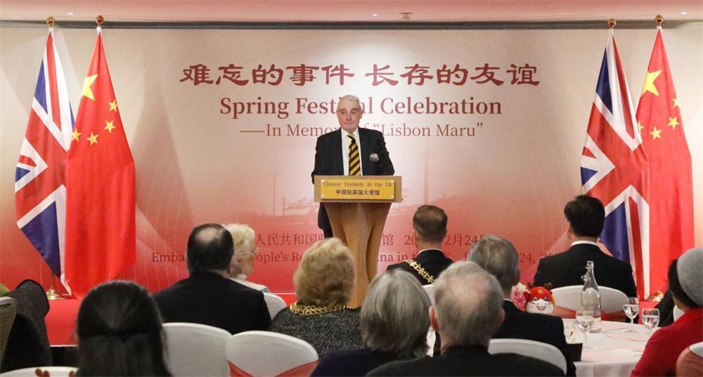 中国驻英国大使郑泽光在致辞中回顾了“里斯本丸”号船营救事件经过,表示正如2022年习近平主席在致“里斯本丸”号船幸存者丹尼斯•莫利之女丹妮丝•维尼的复信中指出,中国浙江省舟山渔民英勇营救“里斯本丸”号船英军战俘的感人事迹,是中英在第二次世界大战中作为盟友并肩作战、共同抗击法西斯侵略的重要见证,也是两国人民结下深厚情谊的历史佳话。