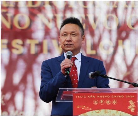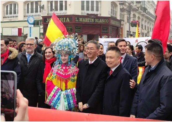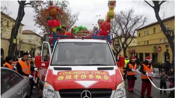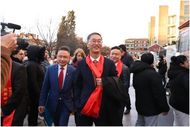 2024年1月28日,西班牙青田同乡会会长朱晓海、中国驻西班牙大使姚敬等人赴萨拉戈萨市出席当地春节巡游活动。