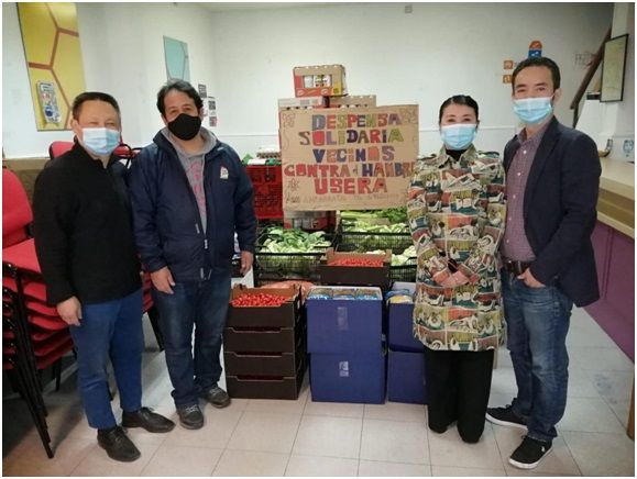 朱晓海联合商家在疫情期间为多个西班牙居委会免费提供食物和防疫用品。
