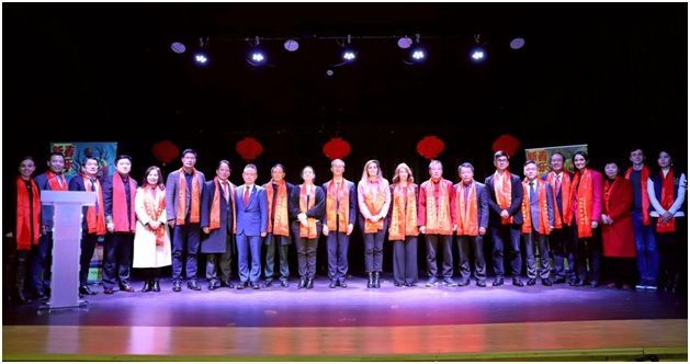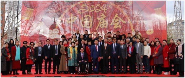 2024年乌塞拉春节庙会上,朱晓海与各位嘉宾合影。