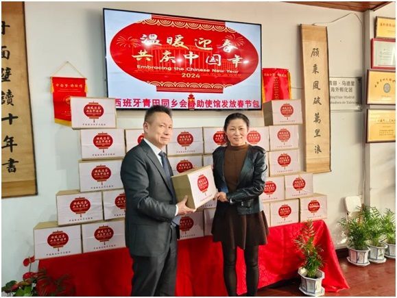 朱晓海在旅西生活期间,一直积极配合中国驻西使馆的工作开展,服务侨民。比如,每年他都会全力协助使馆的“春节包”发放工作,从打包仓储到联系分发,事无巨细,亲力亲为。他表示:“中国驻西班牙大使馆工作人员工作繁重,却不辞辛劳,坚持每年为我们精心准备和安排发放春节包,不仅为远在海外的我们带来家乡的年味,更是让我们感受到祖国的关爱与牵挂。作为旅西侨界的一员,我要竭尽所能协助使馆将春节包派发到每个有需要的侨胞手上,将祖国对华侨华人无微不至的关怀传递下去。”
