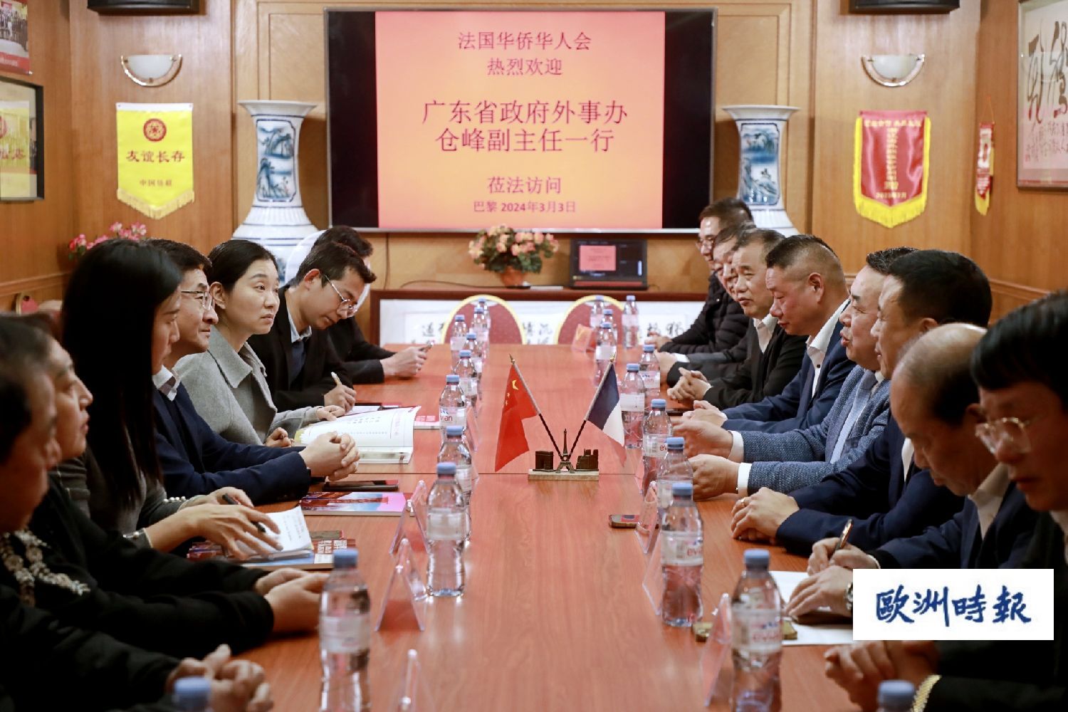 (欧洲时报记欧文报道)法国当地时间2024年3月3日晚6点半,广东省外事办副主任仓峰一行访问了法国华侨华人会,并与该会主席团成员座谈交流。