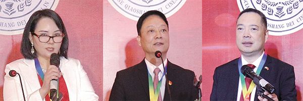 洪森淼代表侨界发言,他指出,随着中意两国友好关系的不断深化,越来越多的企业走进意大利,双方文化交流与经贸合作日益紧密。他表示,侨商总会一直秉持创会宗旨,致力于服务侨胞,带领侨胞融入当地社会,同时积极参与祖国家乡建设,推动中意两国经贸文化的友好交流往来。愿新一届会长团在胡爱芬会长的带领下能够再接再厉,砥砺前行,谱写更加灿烂的辉煌篇章。