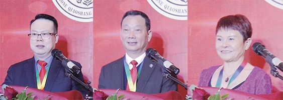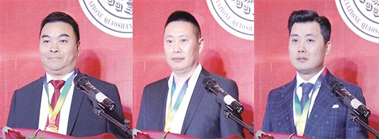 图片人物依次为荣誉会长郑秀琴、青田县执行会长叶小勇、荣誉会长何建锋。