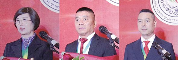 图片人物依次为意大利(中国)侨商总会第五届会长胡爱芬、意大利(中国)侨商总会终身名誉会长项进光、意大利(中国)侨商总会第一常务副会长卢昕曦。