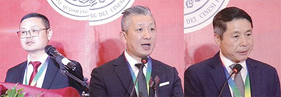 致辞环节结束后,主席台嘉宾共同为第五届会长团的会务工作剪彩,驻意使馆领导、侨团代表、意方友人等与会人员一同见证侨商总会第五届会务工作正式启航。