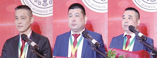 图片人物依次为瑞安市执行会长杨志利、监事长徐闯、江苏省执行会长兼外交徐旭栋。