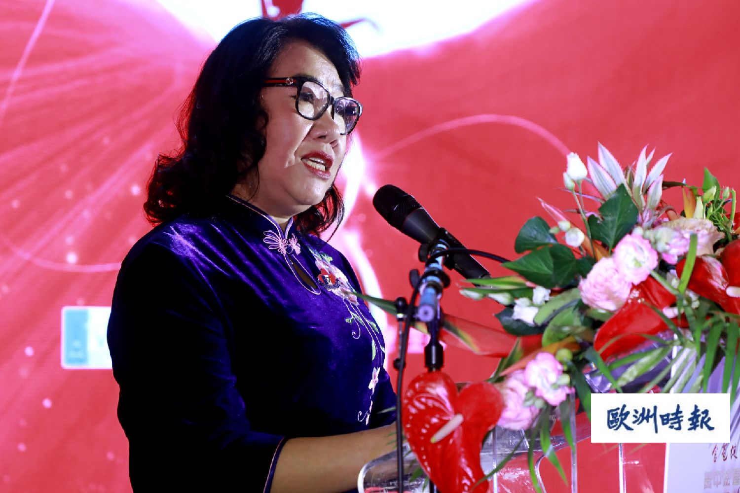 法国华侨华人会主席蔡君柱代表旅法侨界向姐妹们致意节日的问候和诚挚的祝福。