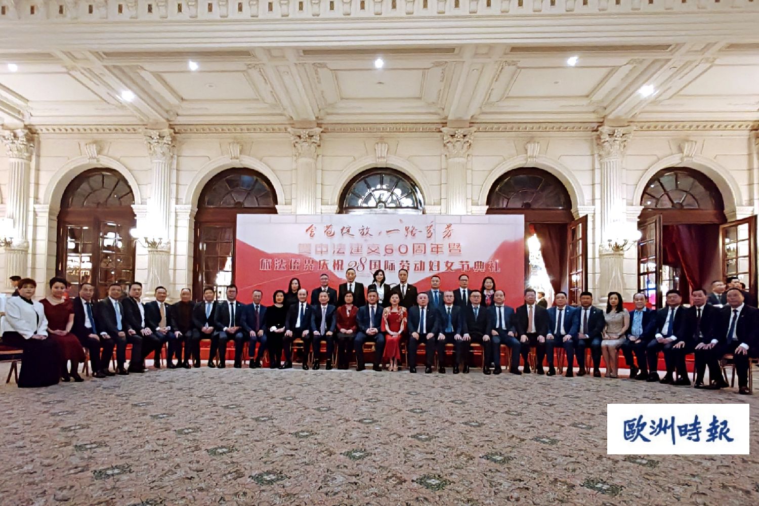 (欧洲时报记者欧文报道)法国当地时间2024年3月8日晚,旅法华侨华人妇女姐妹欢聚一堂,共庆自己的节日——“三八”国际妇女节。中国驻法使馆临时代办陈栋夫妇、领事侨务处副主任王立、法国华侨华人会主席蔡君柱、法国华侨华人妇女联合会会长陈岚、法华各社团侨领代表、中资机构企业代表、以及法华各界妇女代表、法国华侨华人妇女联合会成员400余人出席活动。