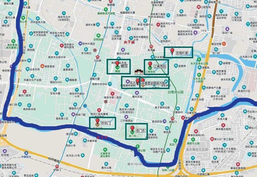 秦淮河把南京城和长江连接起来。历史上,“十里秦淮”声名远播,其实,外秦淮也同样流淌千年繁华。古代社会,它是出入南京的交通要道。由此乘船,可以东往吴越,西去巴陵,南下湘赣岭南。城南的长干里一带是水陆码头,官船、商船、民船聚集于此,店铺林立,居民众多,客流熙熙攘攘。历代文人笔下,多有以“长干”为题的诗文。李白有两首《长干行》,写秦淮女子的爱恋,其中一首有诗句“郎骑竹马来,绕床弄青梅。同居长干里,两小无嫌猜”,留下了两个为人熟知的成语。秦淮河静静流淌了千百年风月繁华,说到“千古诗文一条河”,内、外秦淮都有份。
